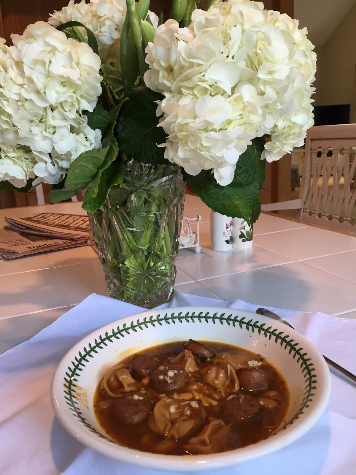 A hearty soup is a wonderful meal on a wintry day. I make large batches of soups freezing in individual containers to always have different soups ready to eat all winter long. My Sausage White Bean Tortellini Soup is healthy and tasty my favorite combination! I’ve use chicken sausage and vegetable broth to cup down on fat and calories while keeping the soup hearty and flavorful. I also use low sodium vegetable broth adding a small amount of salt to the soup. If you use aromatic root vegetable such as garlic, shallots, and fennel while adding strong spices such as thyme you do not need salt to flavor the soup.
